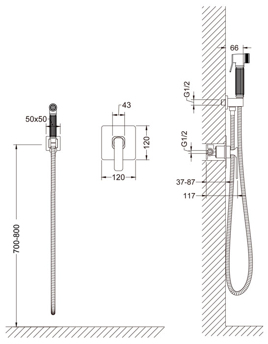 Смеситель скрытого монтажа с гигиеническим душем Timo Torne антик 4389/02SM