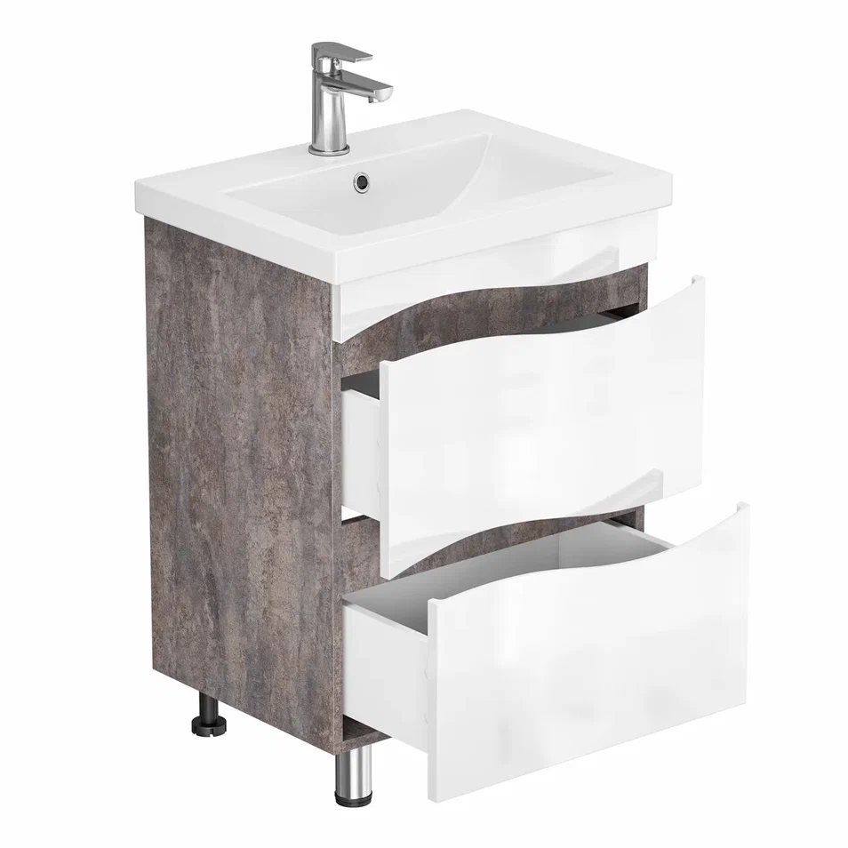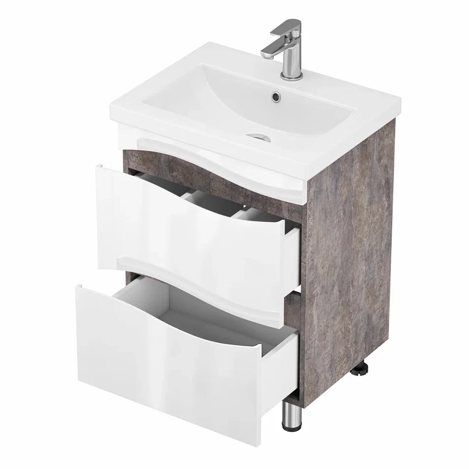 Тумба Афродита с умывальником COMO 60 (2 ящика) цемент GRADEONIKA