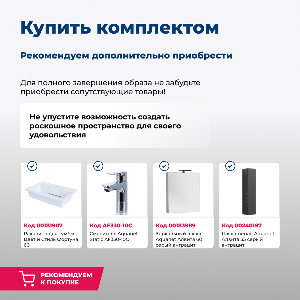 Тумба под раковину Aquanet Алвита 60 серый антрацит