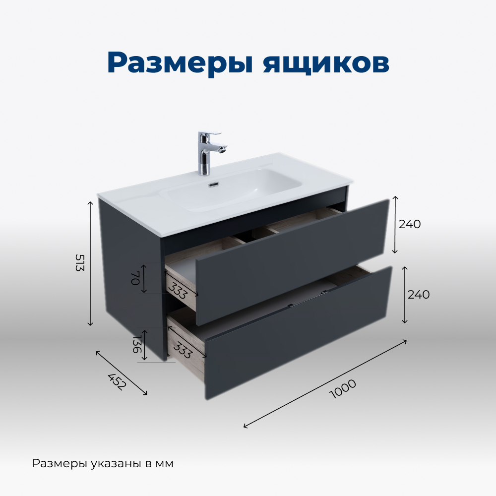 Тумба под раковину Aquanet Алвита New 100 2 ящика, антрацит
