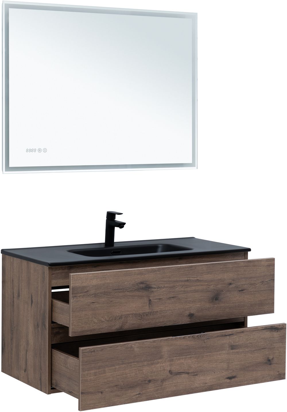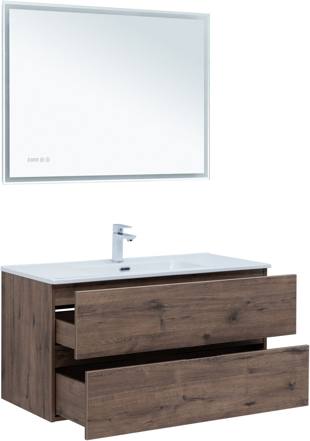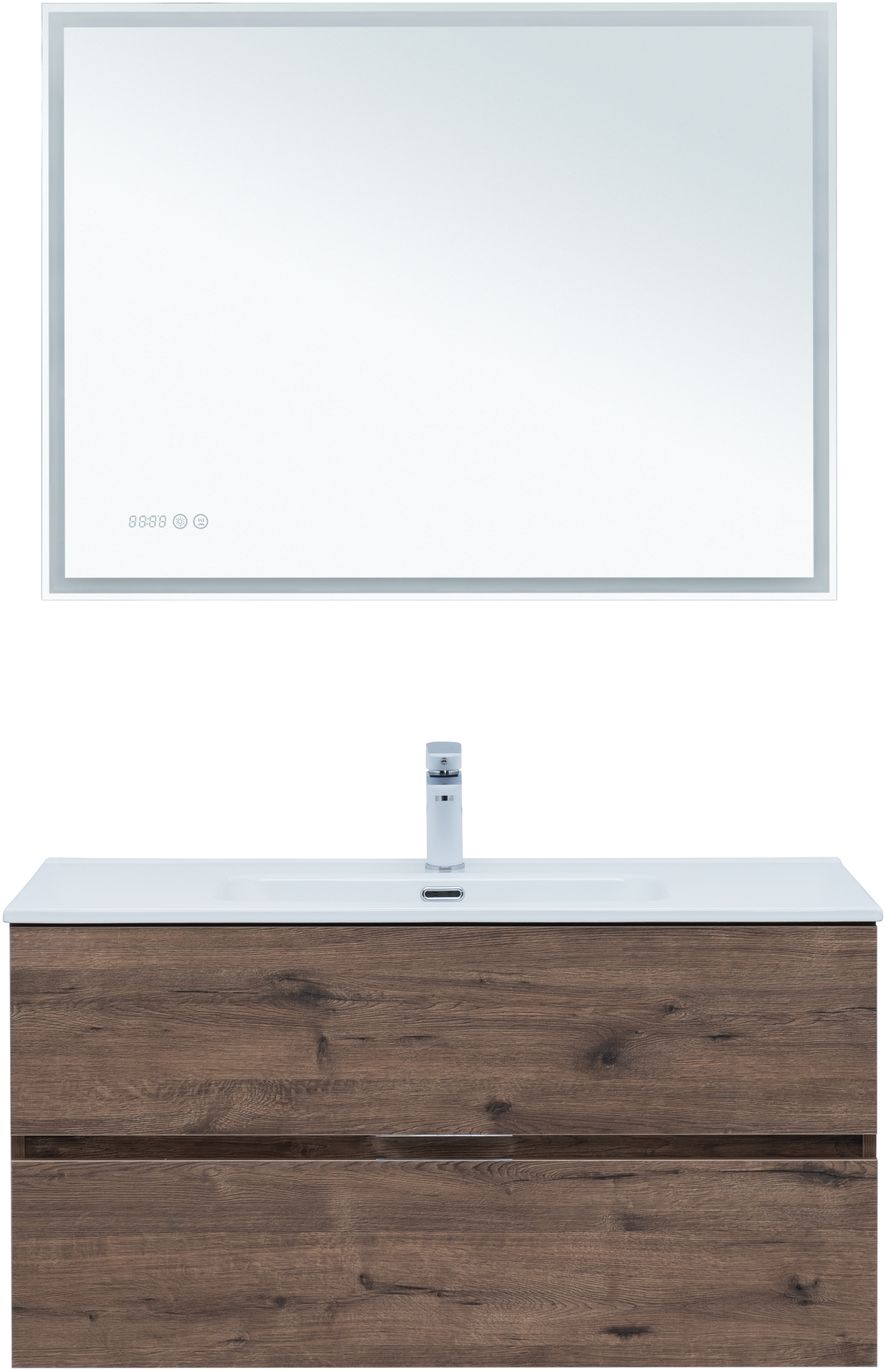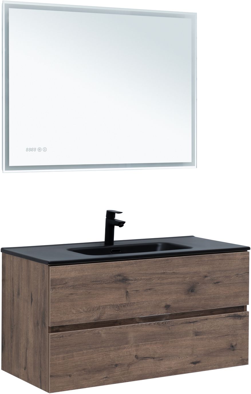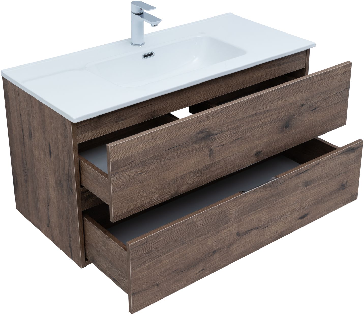 Тумба под раковину Aquanet Алвита New 100 2 ящика, дуб веллингтон табак