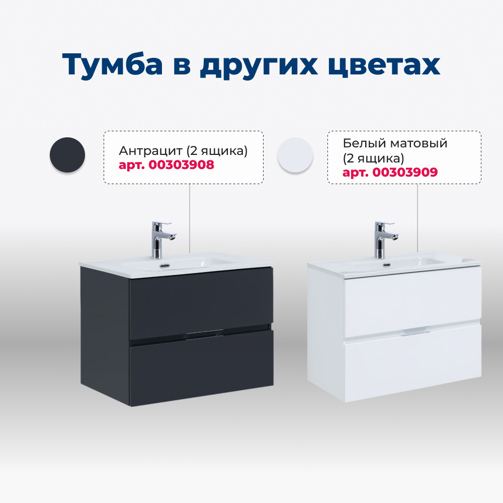 Тумба под раковину Aquanet Алвита New 70 2 ящика, белый матовый