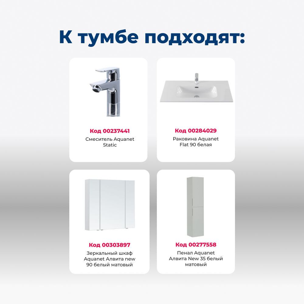 Тумба под раковину Aquanet Алвита New 90 2 ящика, белый матовый