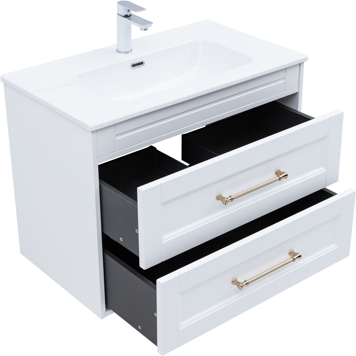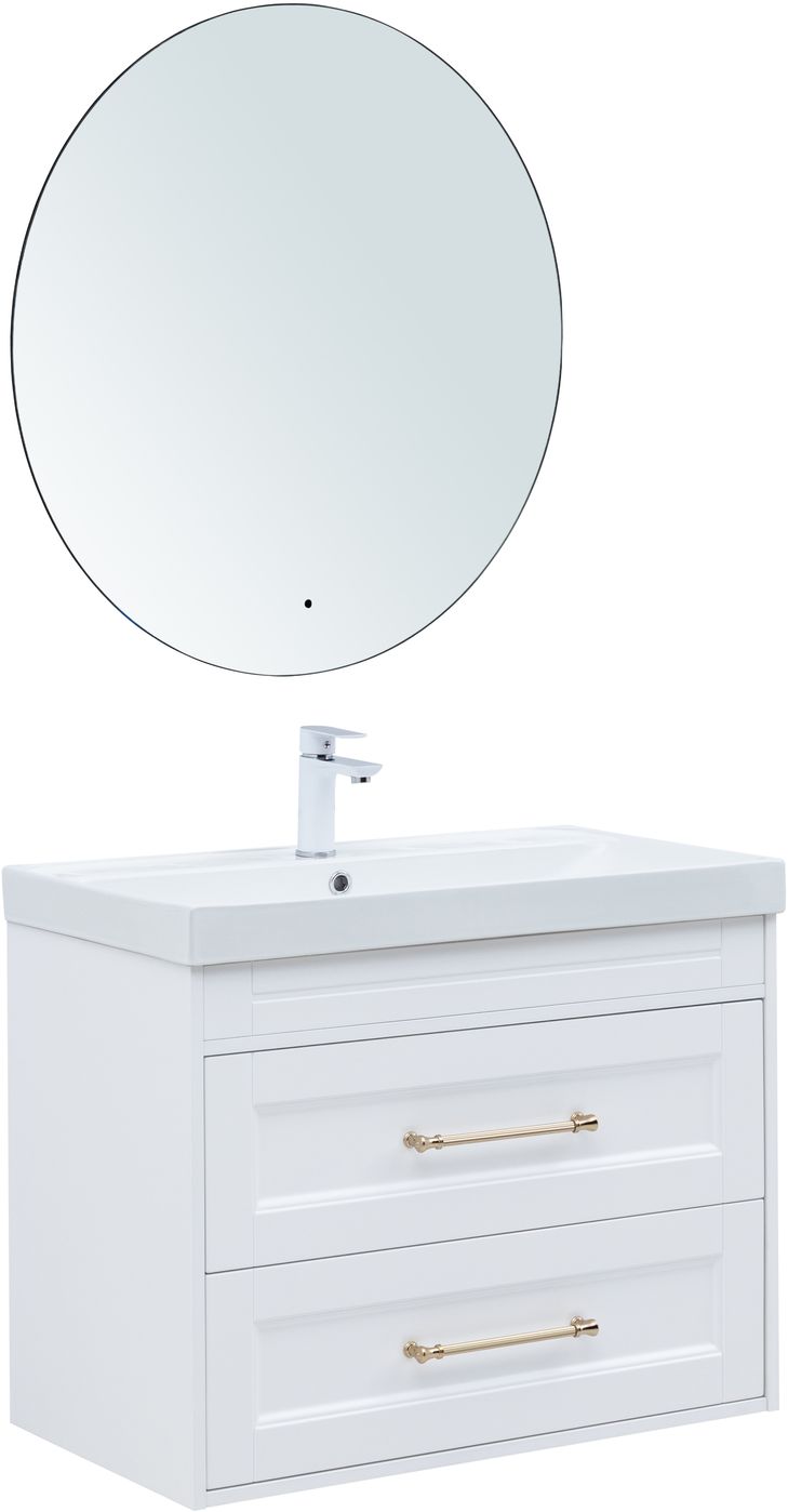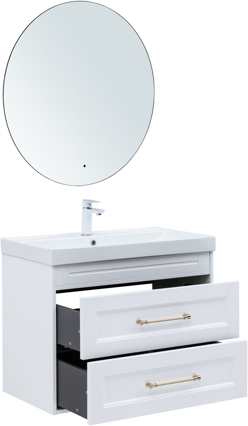 Тумба под раковину Aquanet Бостон new 80 белый сатин (ручки золото)