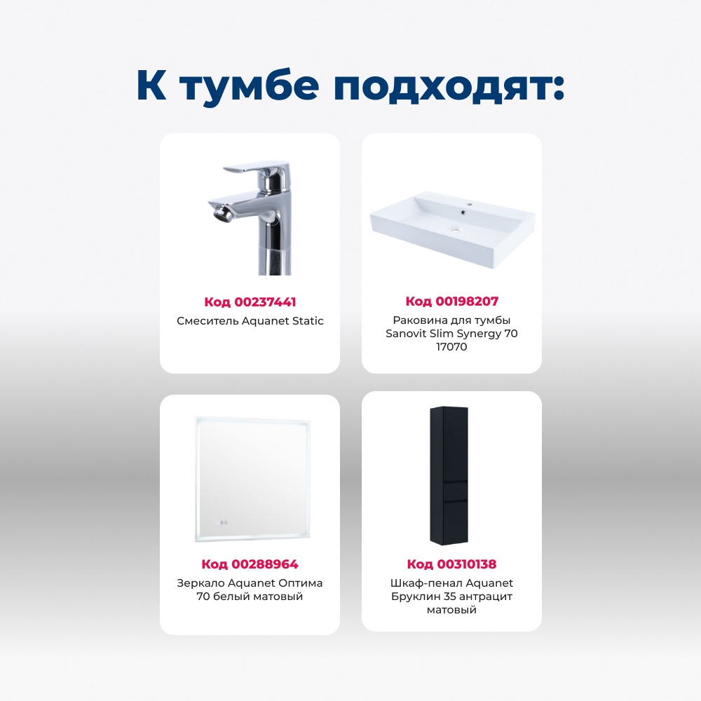 Тумба под раковину Aquanet Бруклин 70 антрацит матовый