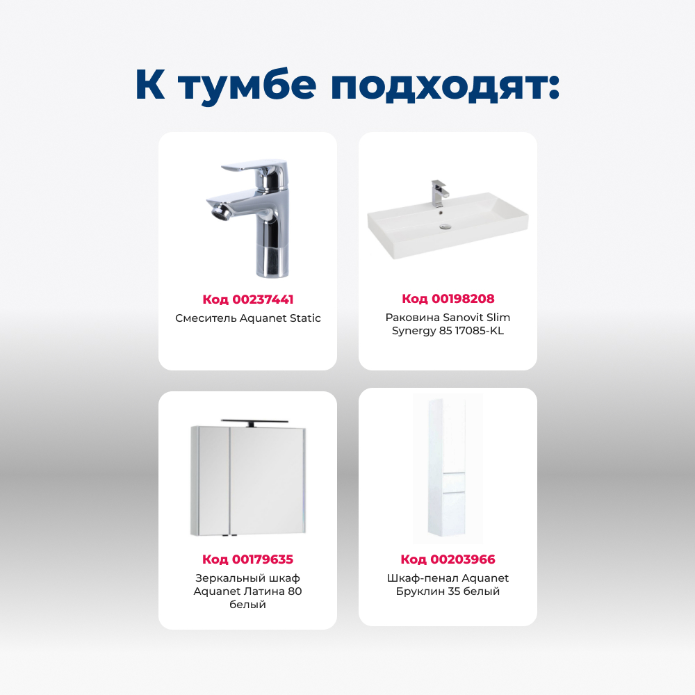 Тумба под раковину Aquanet Бруклин 85 белый