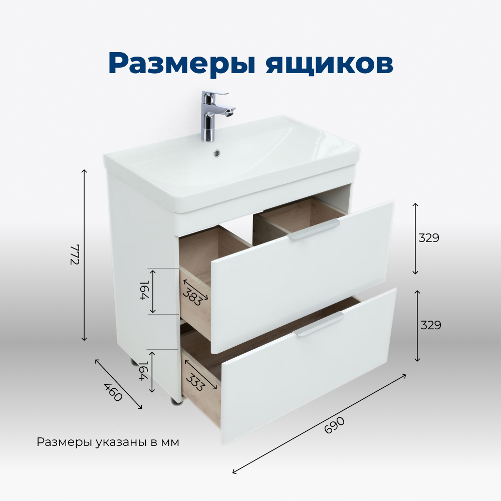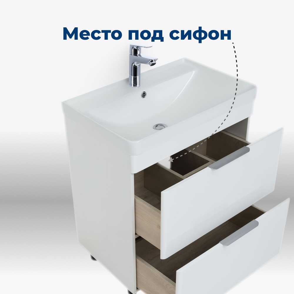 Тумба под раковину Aquanet Ирис New 70 белый глянец (2 ящика, ножки)