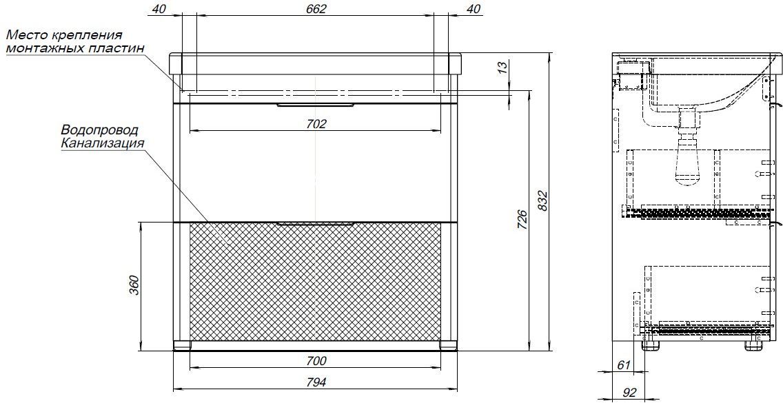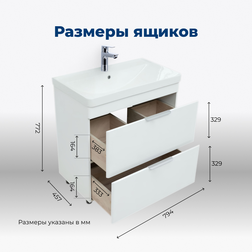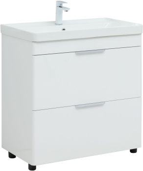 Тумба под раковину Aquanet Ирис New 80 белый глянец (2 ящика, ножки)