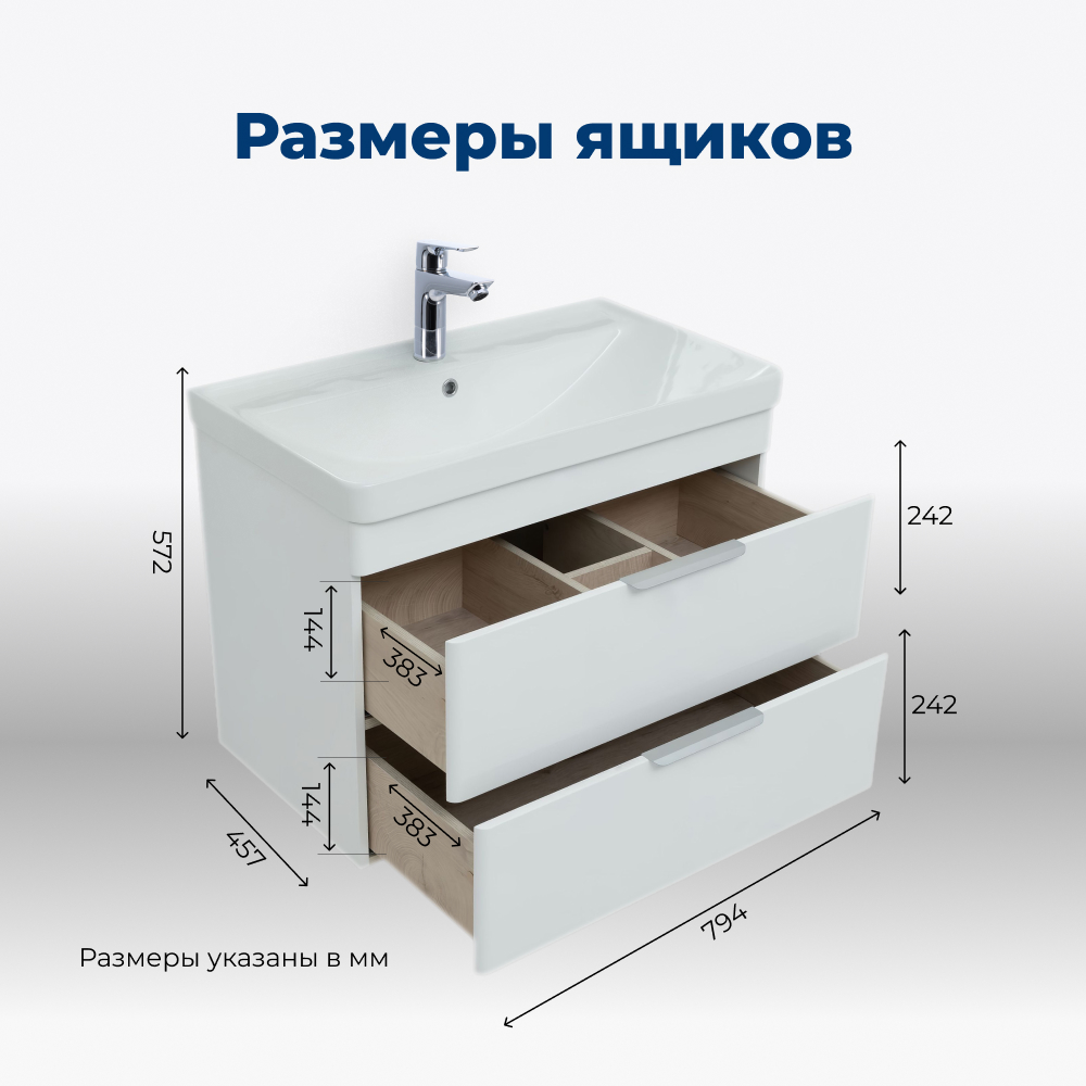 Тумба под раковину Aquanet Ирис New 80 белый глянец (2 ящика)