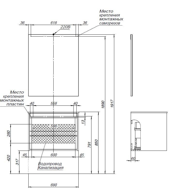 Тумба под раковину Aquanet Lino 70 белый матовый