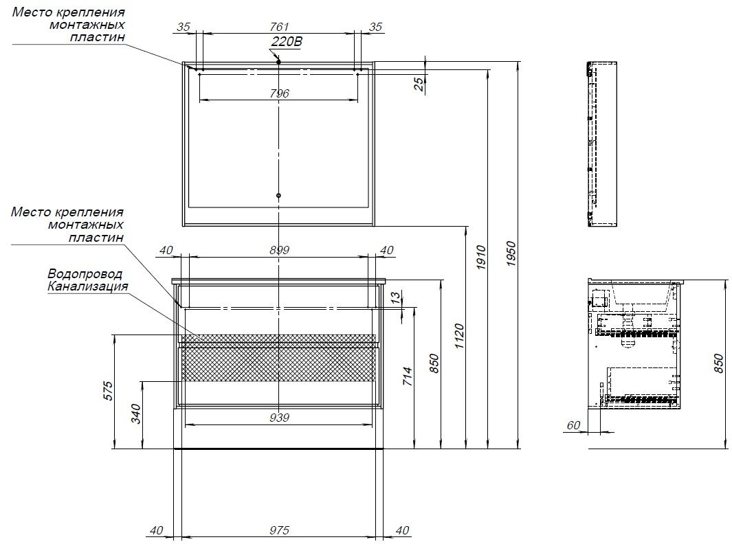 Тумба под раковину Aquanet Милан 105 белый глянец
