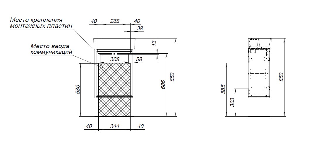 Тумба под раковину Aquanet Милан 45 белый глянец