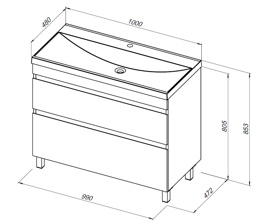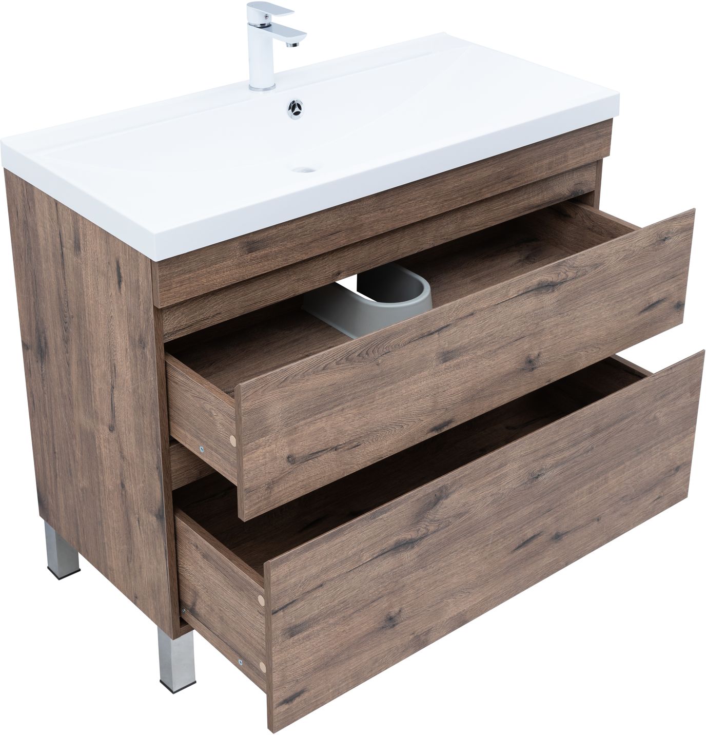 Тумба под раковину Aquanet Нота New 100 напольная, дуб веллингтон табак