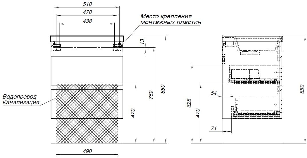 Тумба под раковину Aquanet Нота New 60 дуб веллингтон табак