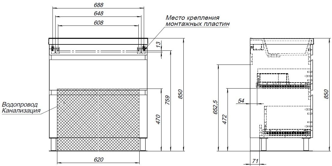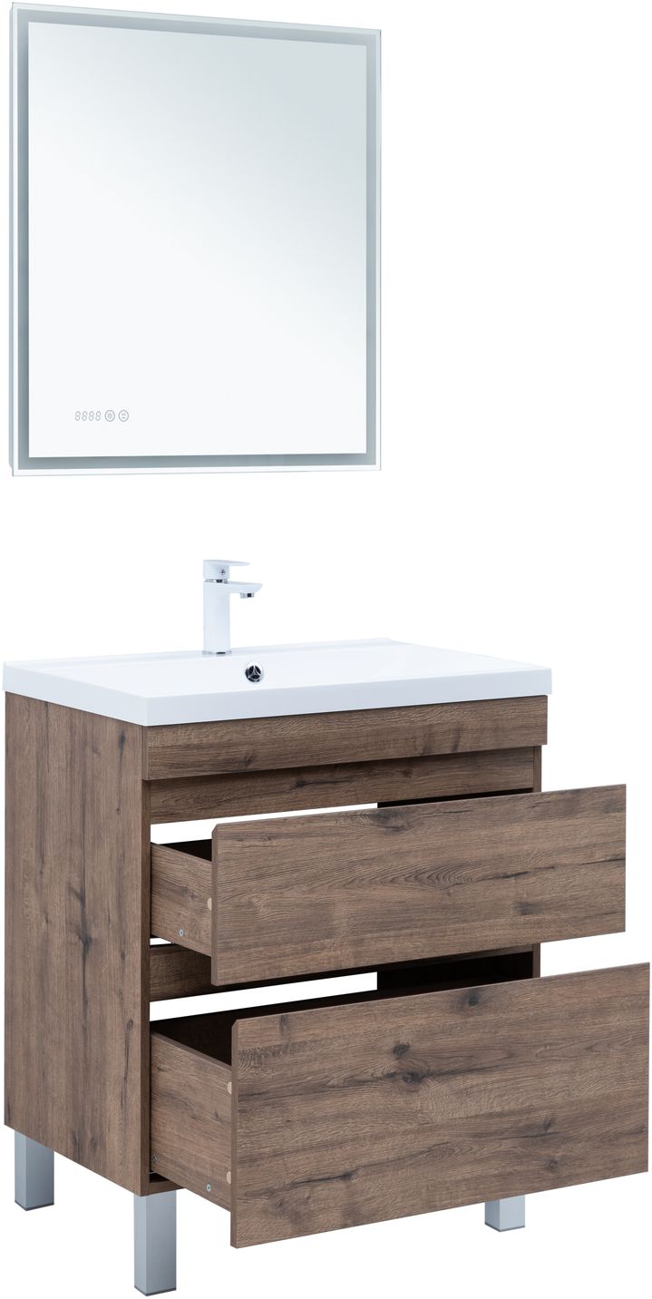 Тумба под раковину Aquanet Нота New 75 напольная, дуб веллингтон табак