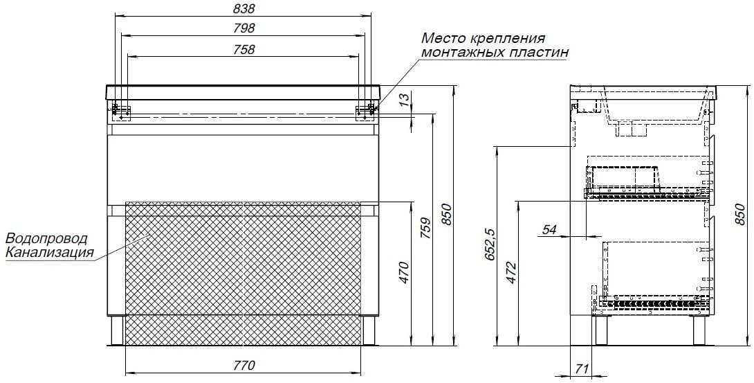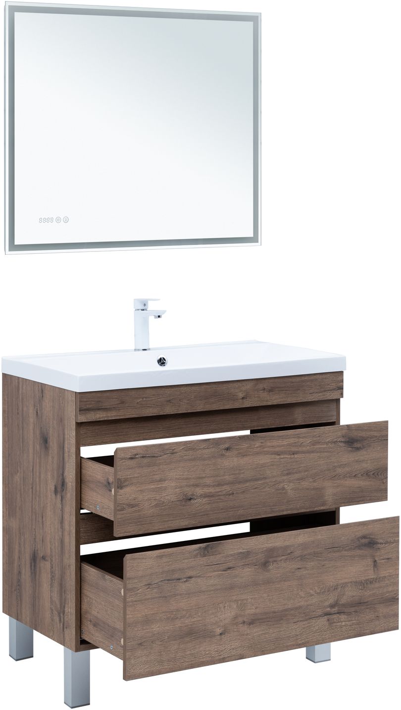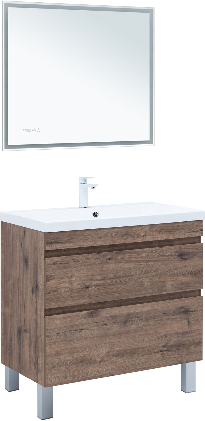 Тумба под раковину Aquanet Нота New 90 напольная, дуб веллингтон табак