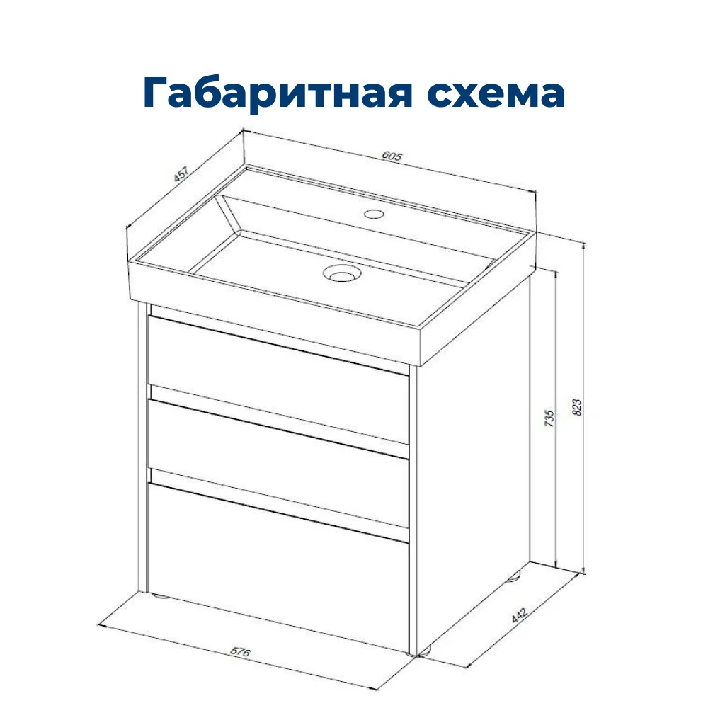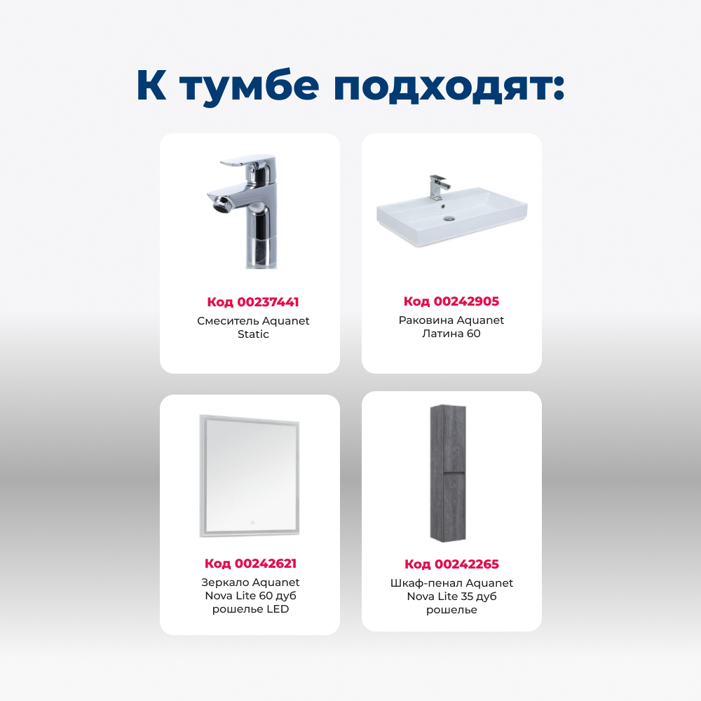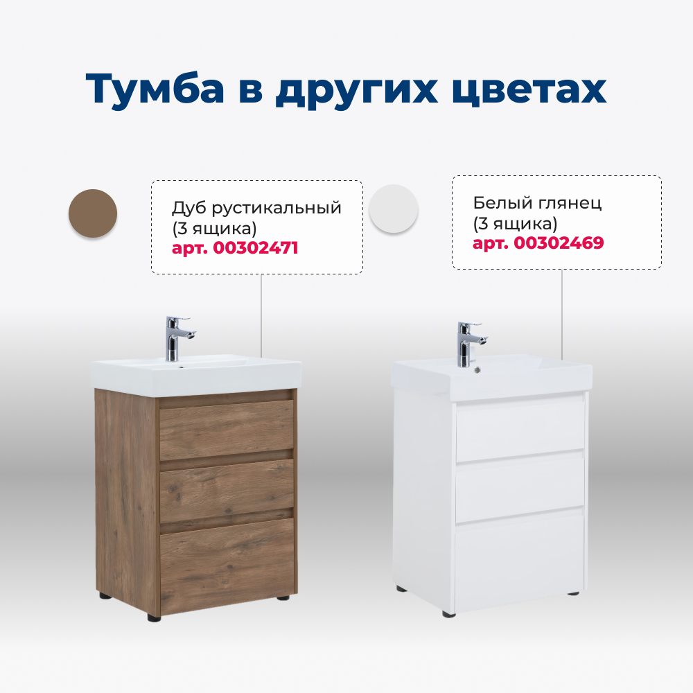 Тумба под раковину Aquanet Nova Lite 60 дуб рошелье (3 ящика)