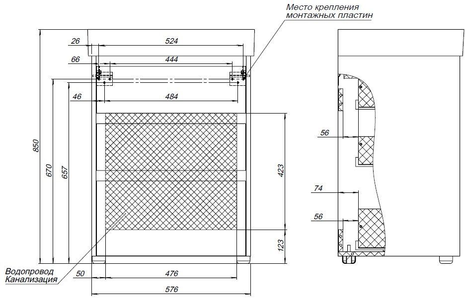 Тумба под раковину Aquanet Nova Lite 60 дуб рустикальный (3 ящика)