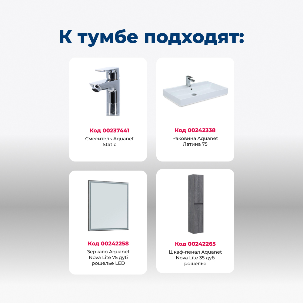 Тумба под раковину Aquanet Nova Lite 75 дуб рошелье (3 ящика)