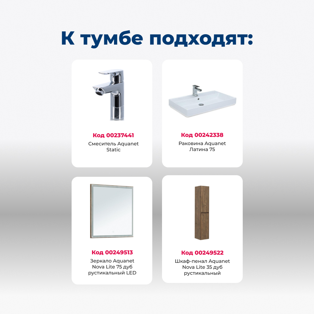 Тумба под раковину Aquanet Nova Lite 75 дуб рустикальный (3 ящика)