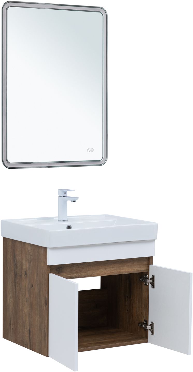 Тумба под раковину Aquanet Оптима 60 дуб рустикальный/белый сатин