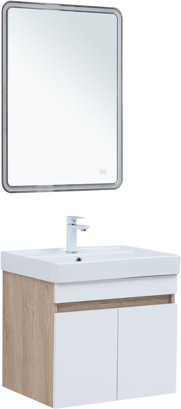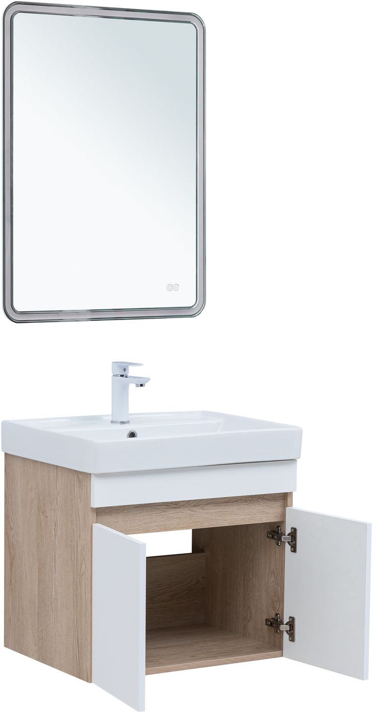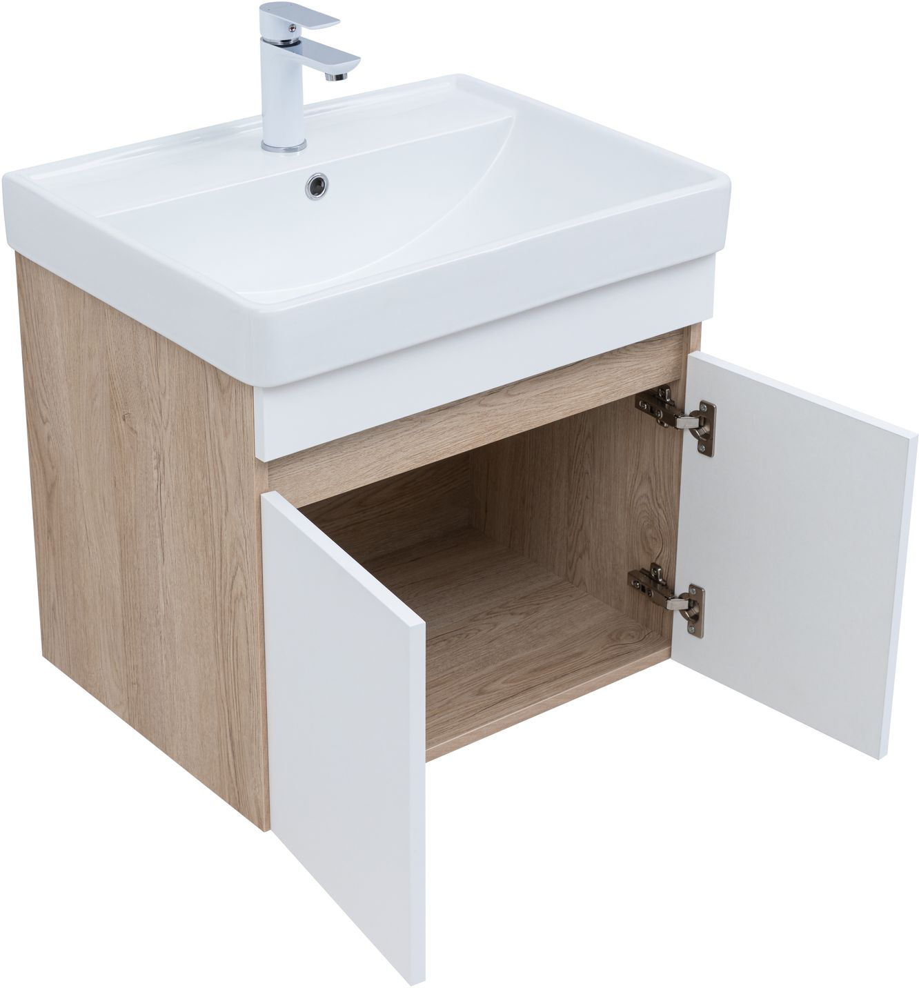 Тумба под раковину Aquanet Оптима 60 дуб светлый/белый сатин