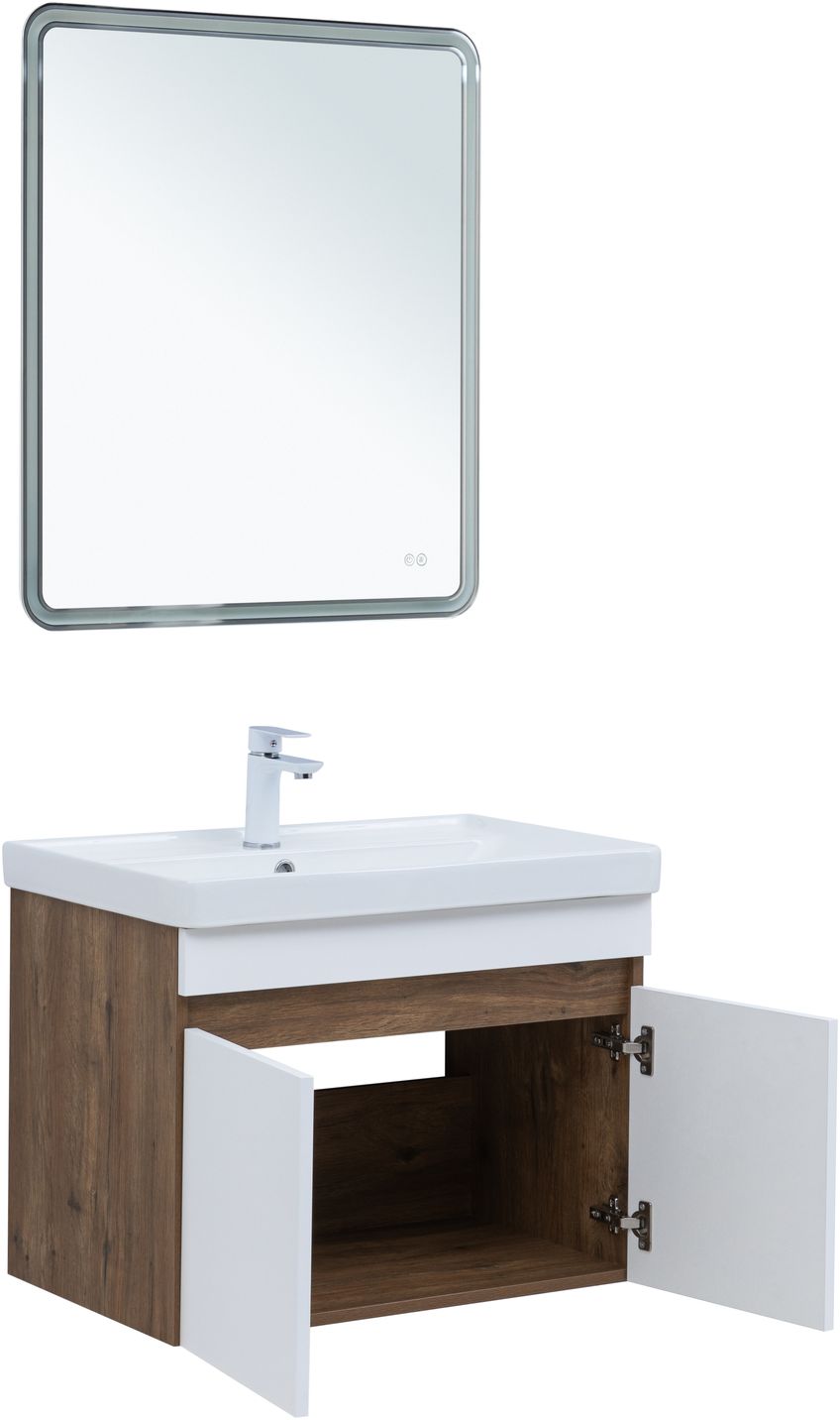 Тумба под раковину Aquanet Оптима 70 дуб рустикальный/белый сатин