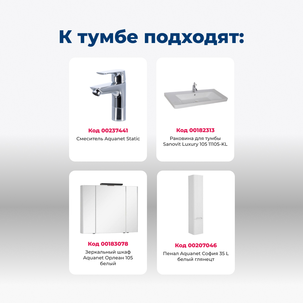 Тумба под раковину Aquanet София 105 белый глянец (2 ящика)