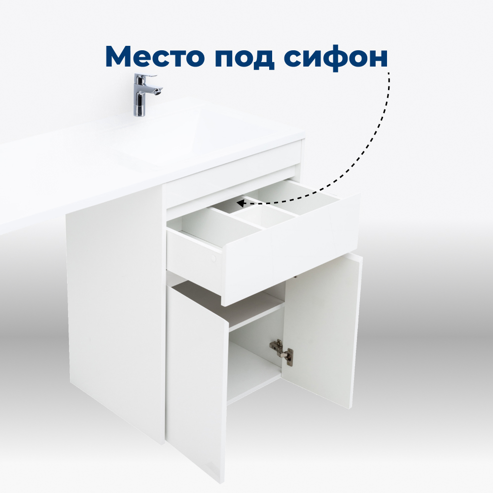 Тумба под раковину Aquanet Токио 58 белый (напольная, 1 ящик, 2 дверцы)