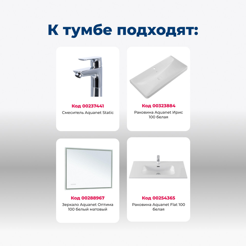 Тумба под раковину Aquanet Вега 100 белый глянец