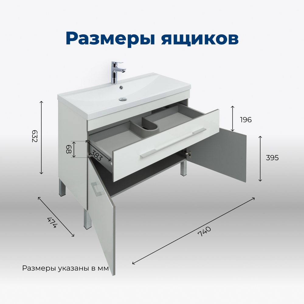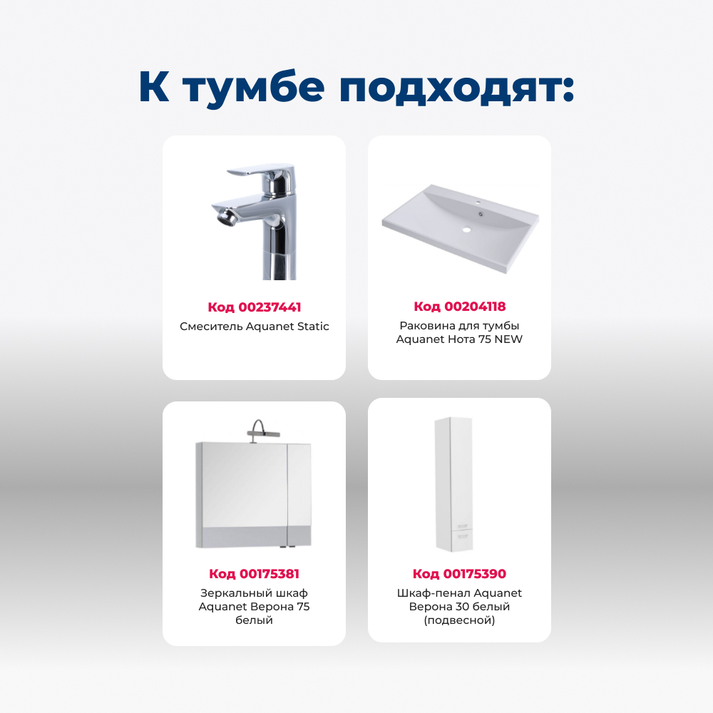 Тумба под раковину Aquanet Верона 75 белый (напольная 1 ящик 2 дверцы)