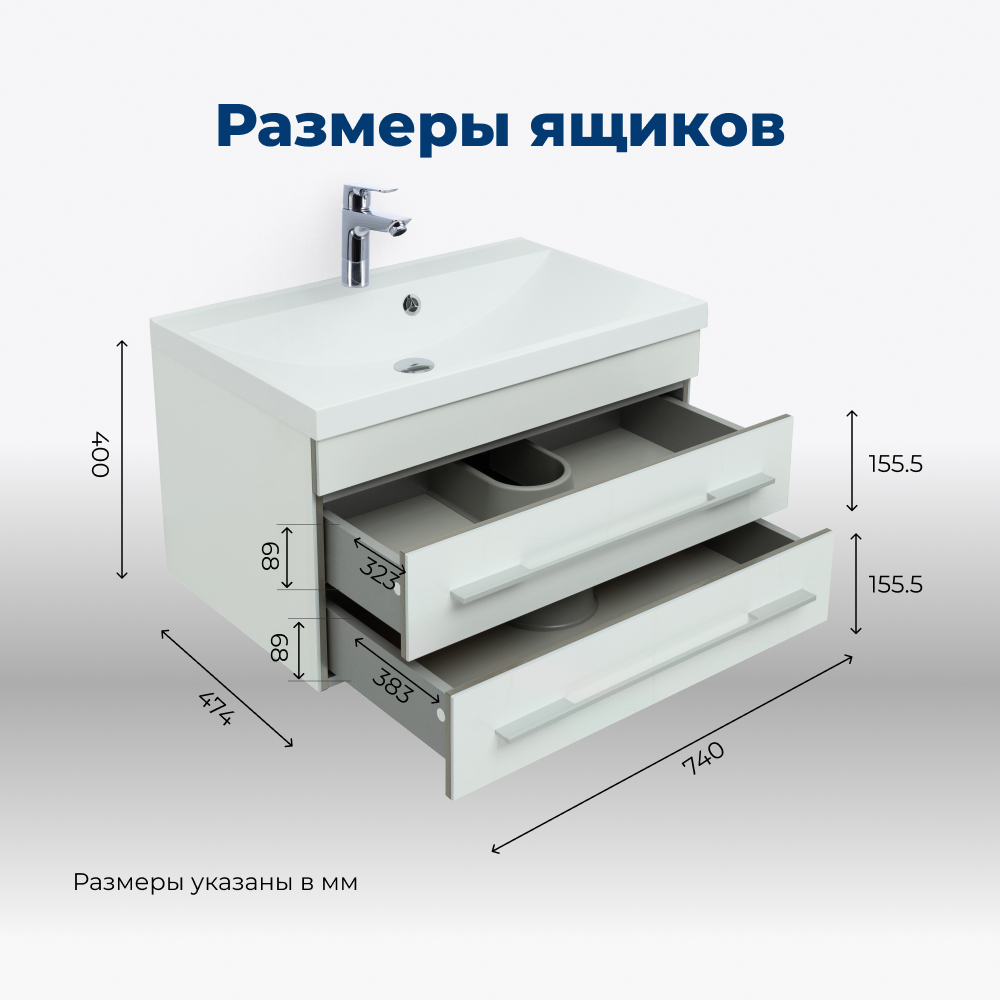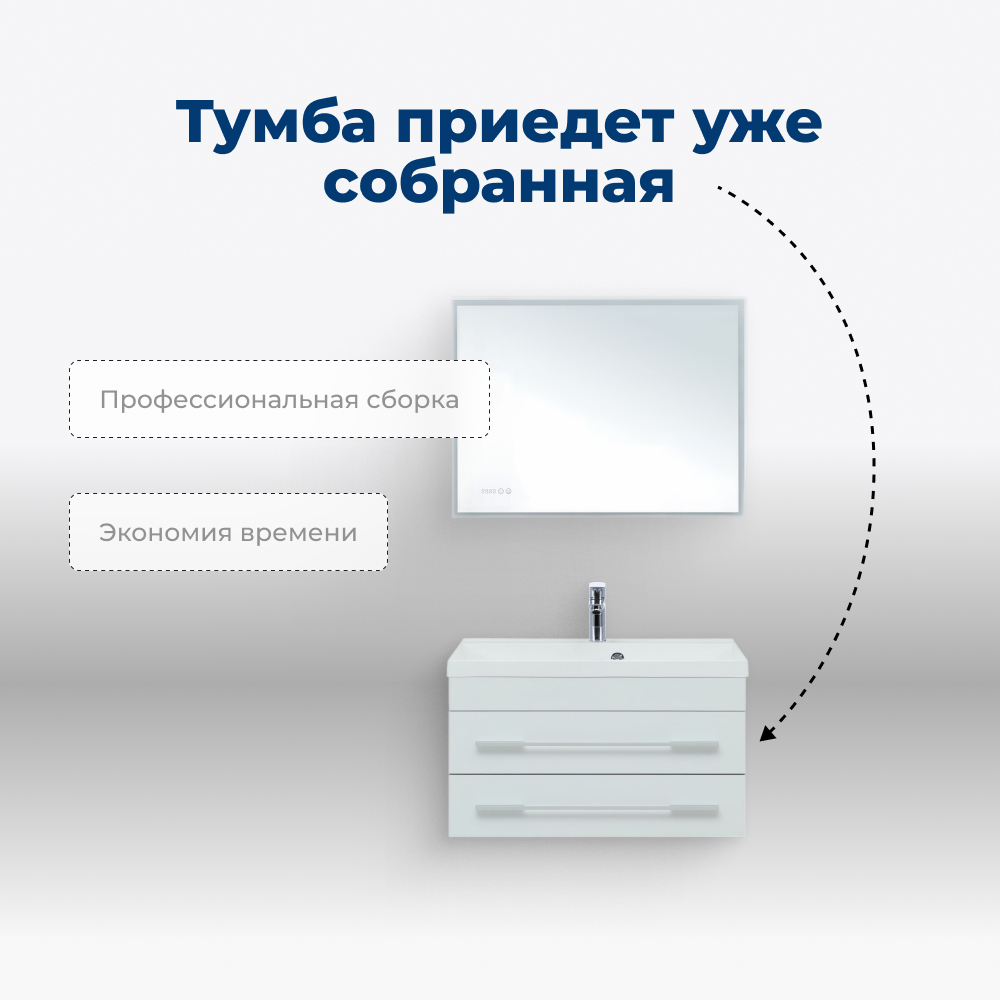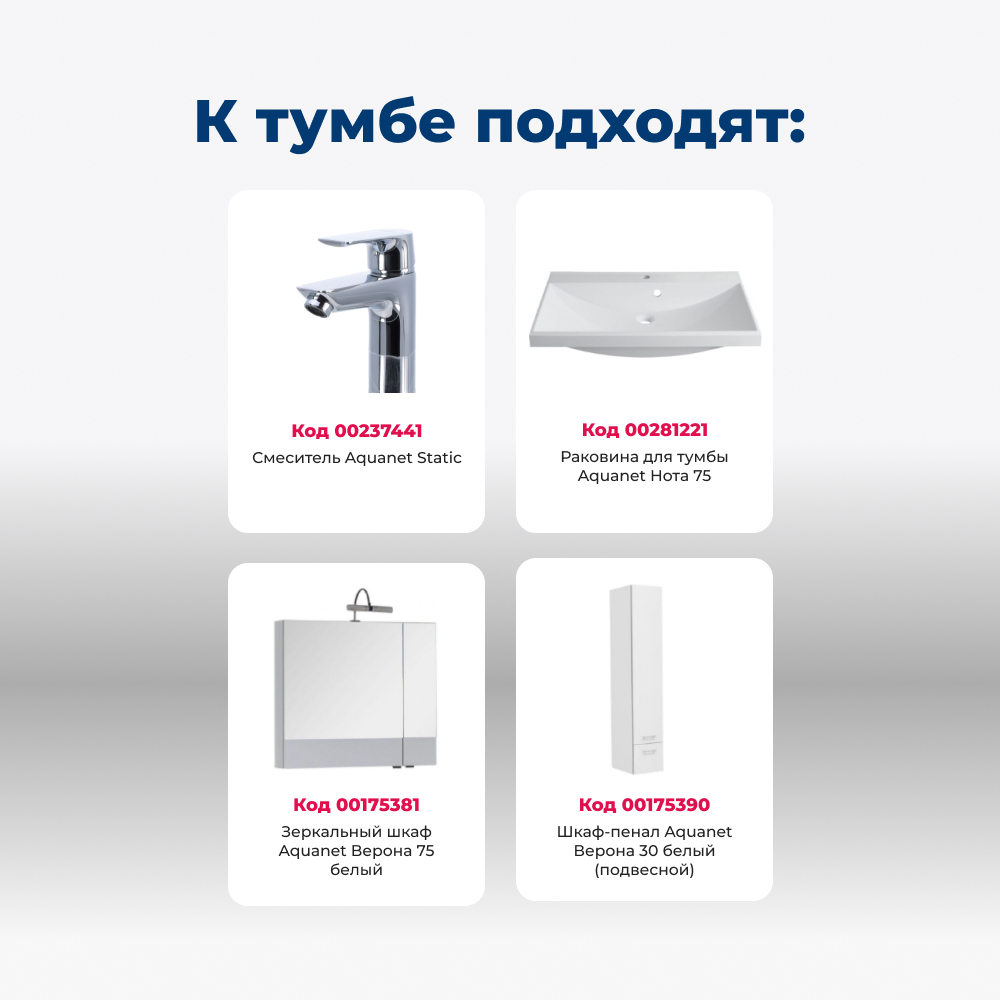 Тумба под раковину Aquanet Верона 75 белый (подвесная 2 ящика)
