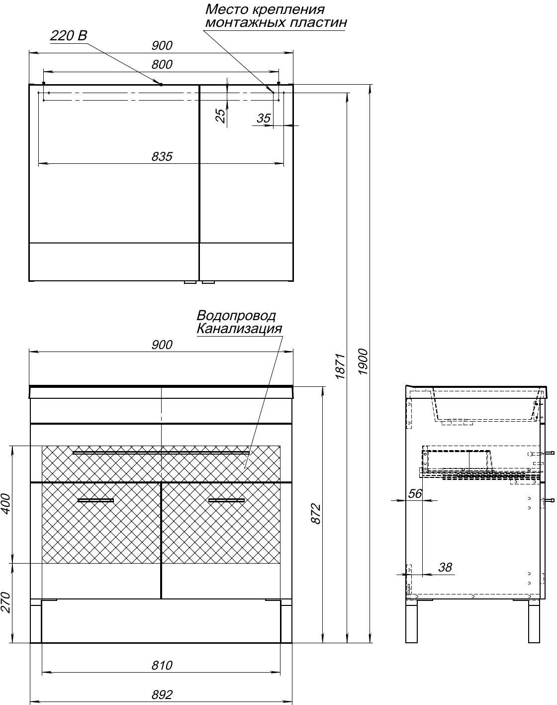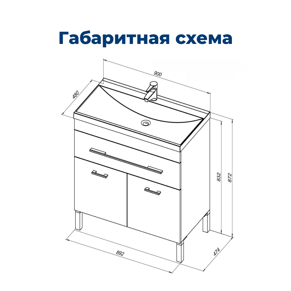 Тумба под раковину Aquanet Верона 90 белый (напольная 1 ящик 2 дверцы)