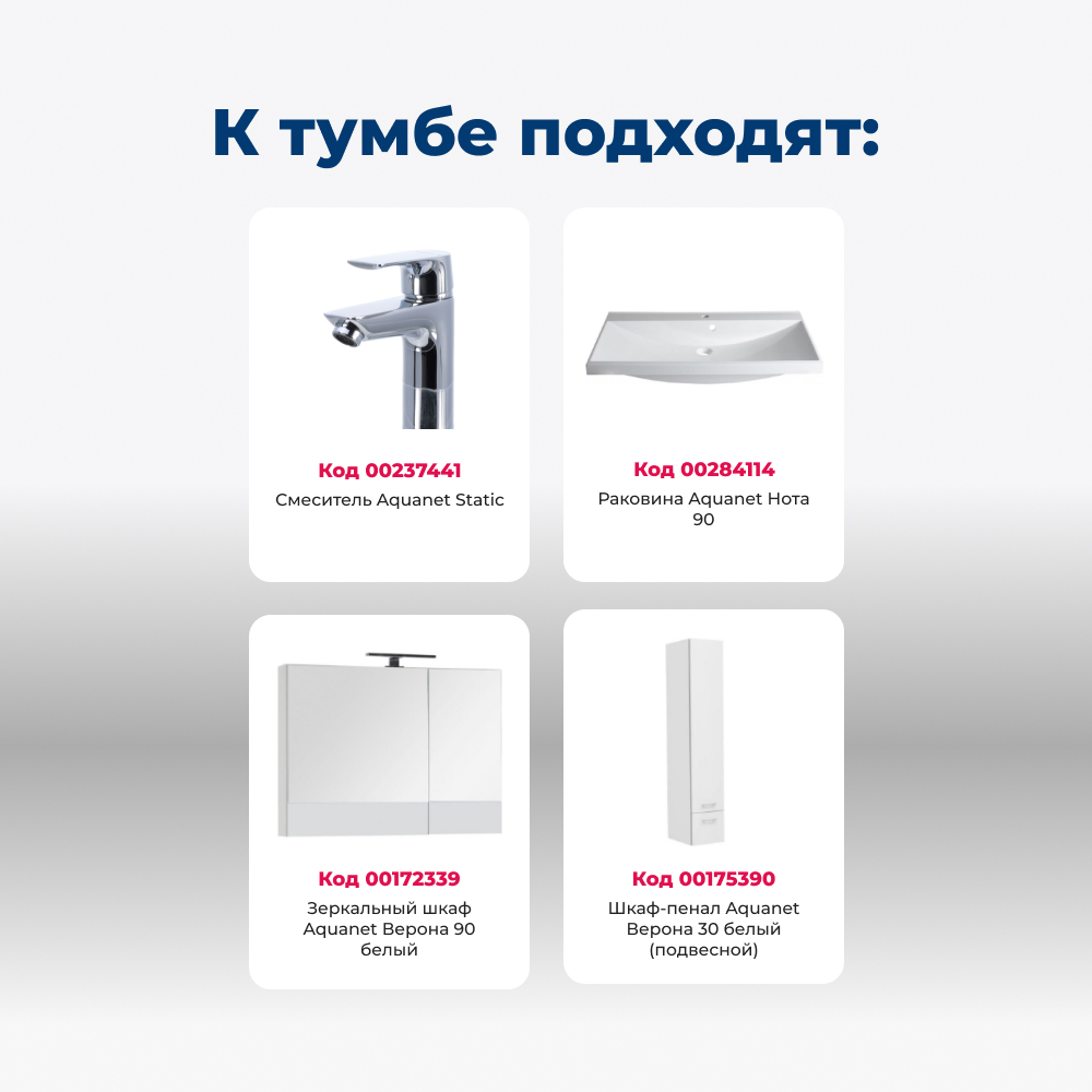 Тумба под раковину Aquanet Верона 90 белый (напольная 3 ящика)