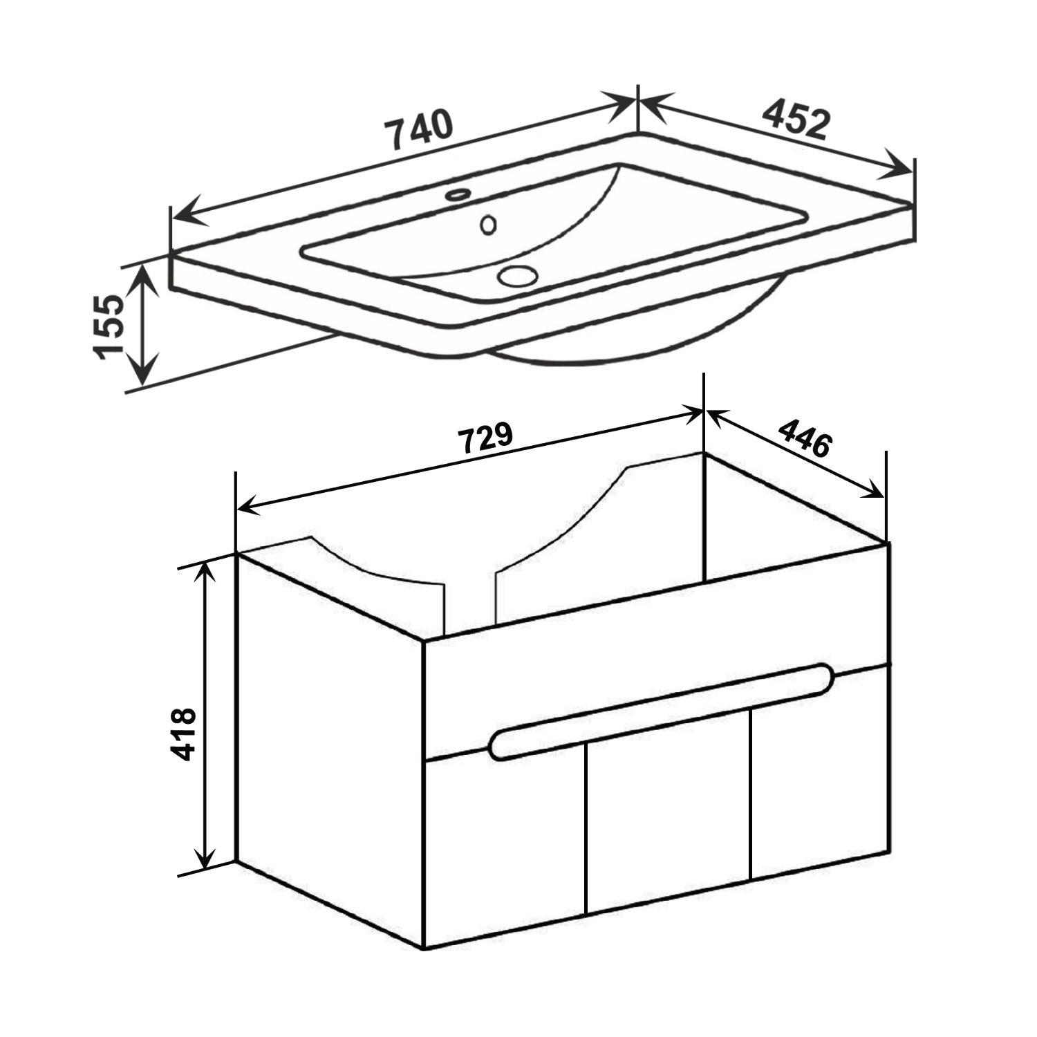 Тумба Runo Парма 75 3 двери подвесная с умывальником Omega 75