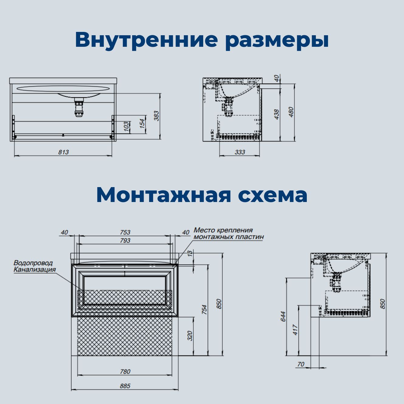 Тумба с раковиной Aquanet Агата 90 R 1 ящ. цв. белый сатин