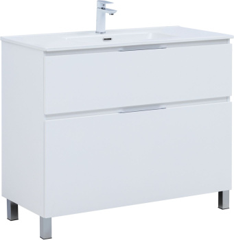 Тумба с раковиной Aquanet Алвита new 100 (Flat) напольная 2 ящ. цв. белый матовый