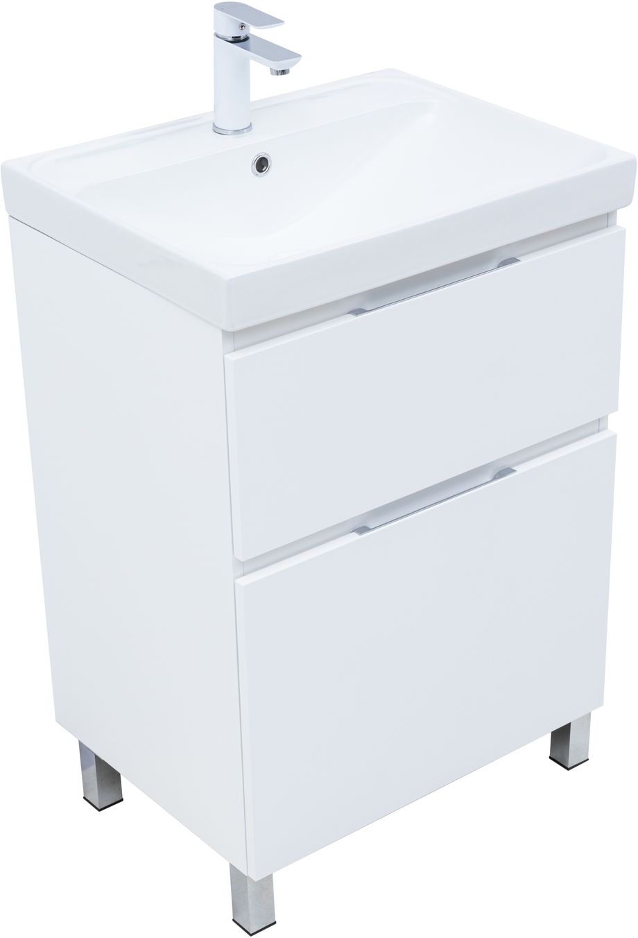 Тумба с раковиной Aquanet Алвита new 60 (Flash) напольная 2 ящ. цв. белый матовый