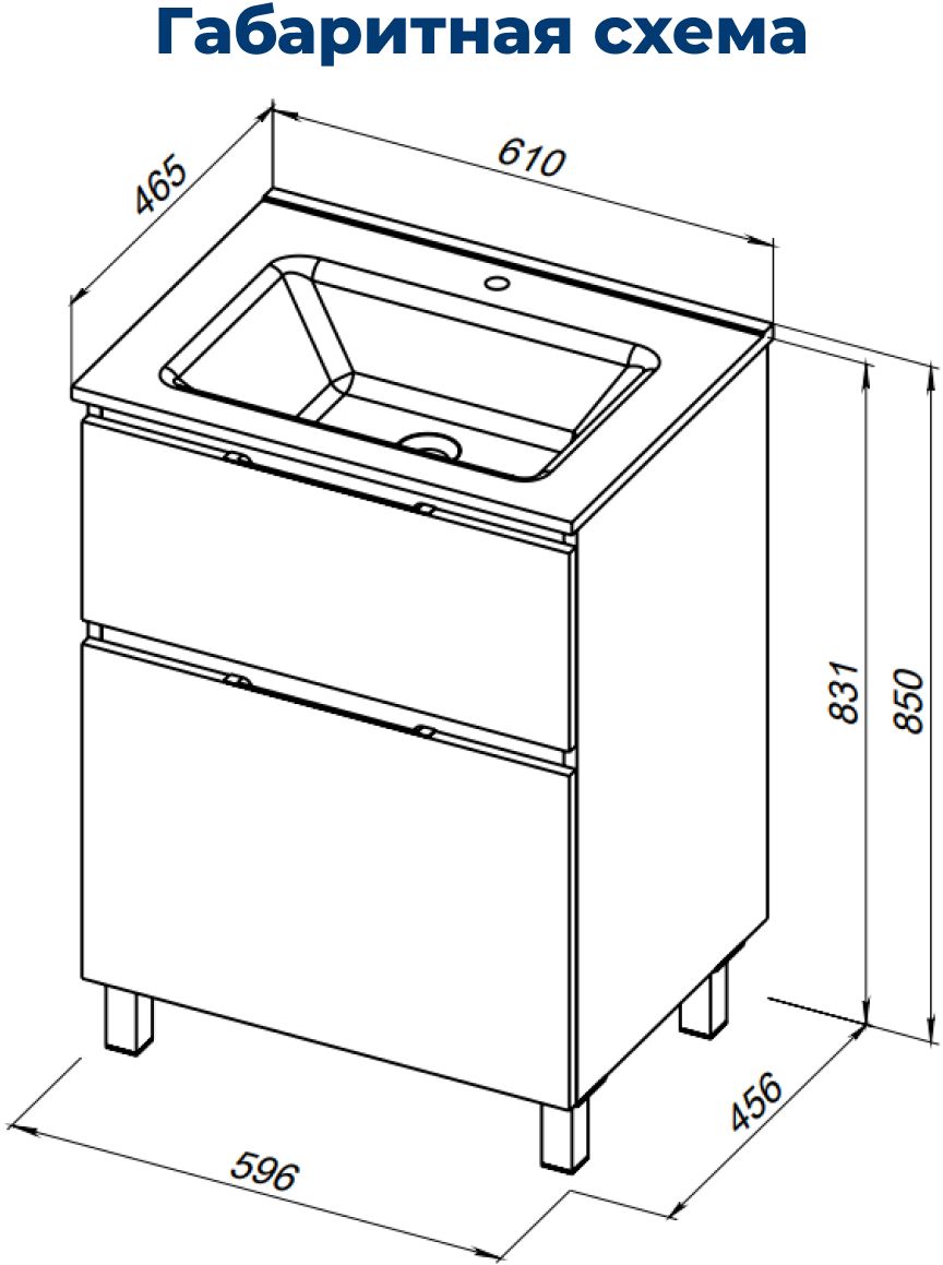 Тумба с раковиной Aquanet Алвита new 60 (Flash) напольная 2 ящ. цв.дуб веллингтон табак