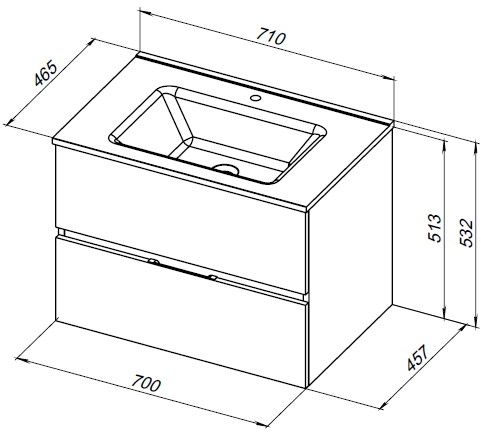 Тумба с раковиной Aquanet Алвита new 70 2 ящ. цв.дуб веллингтон табак
