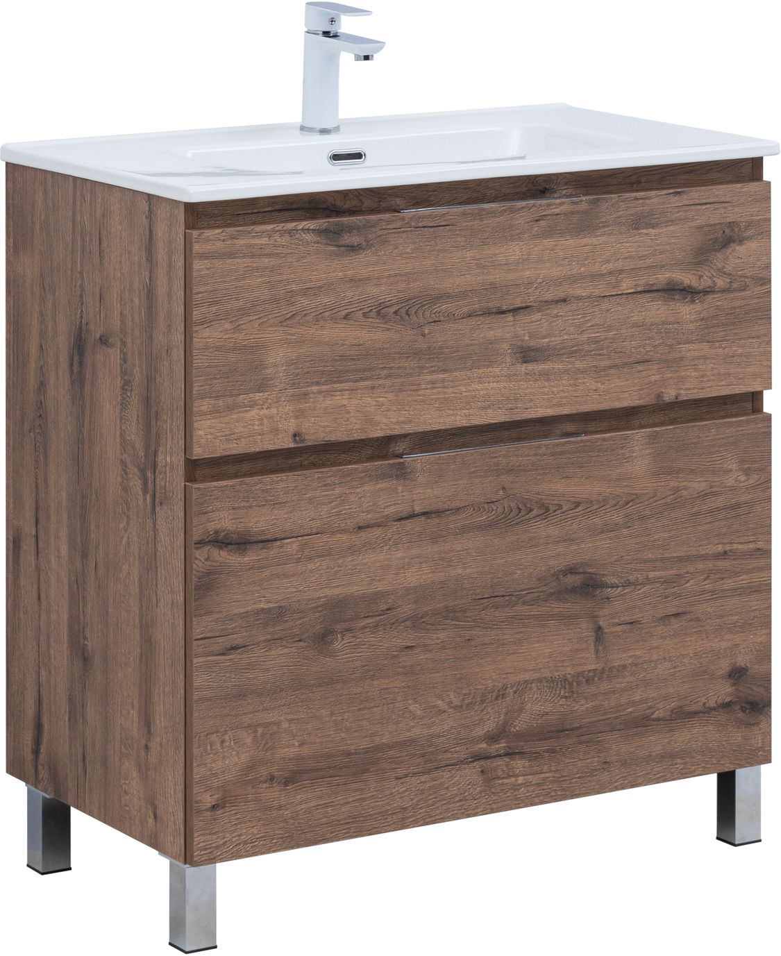 Тумба с раковиной Aquanet Алвита new 80 (Flat) напольная 2 ящ. цв.дуб веллингтон табак