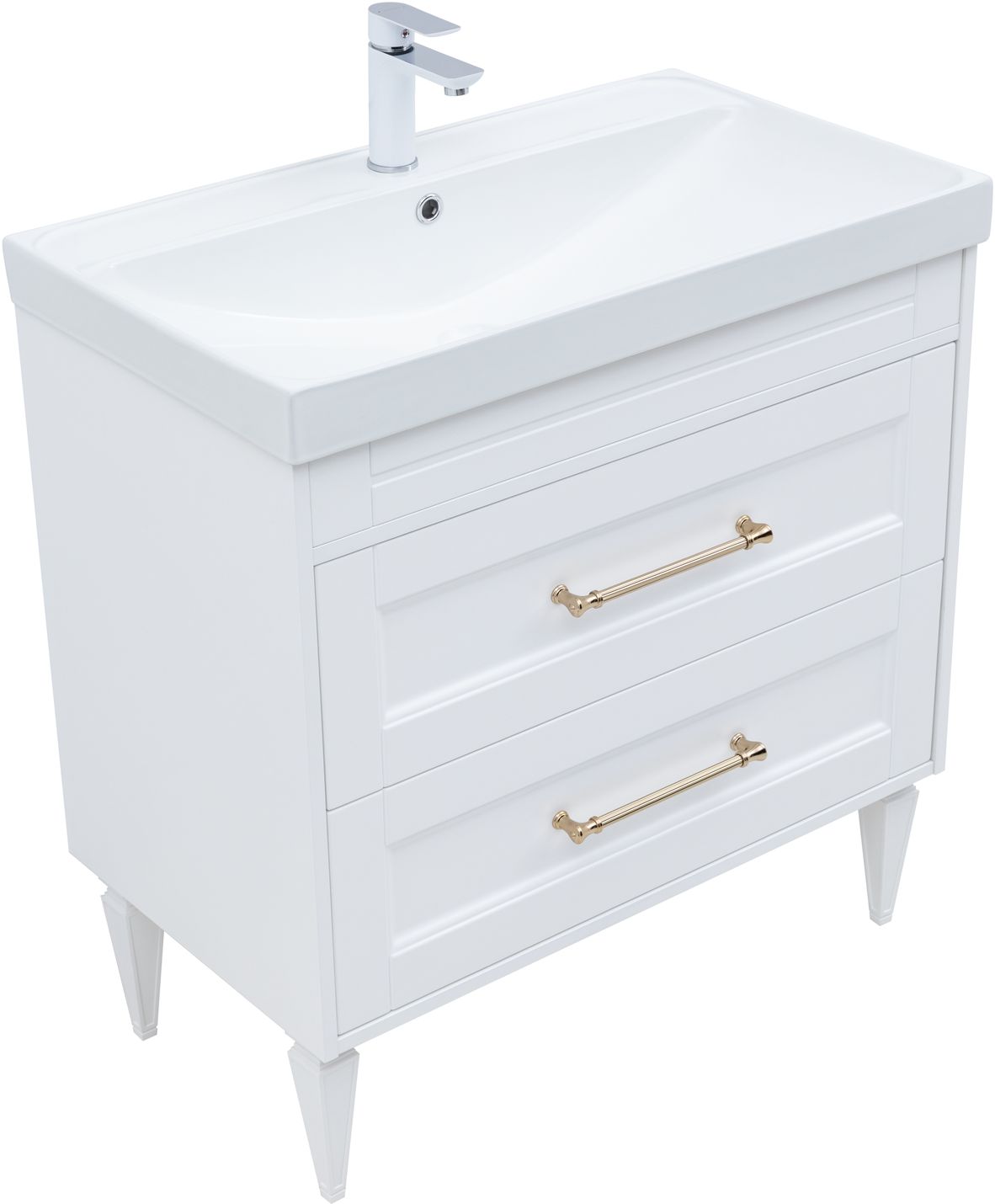 Тумба с раковиной Aquanet Бостон new 80 (Flash) цв.белый сатин, ручки золото