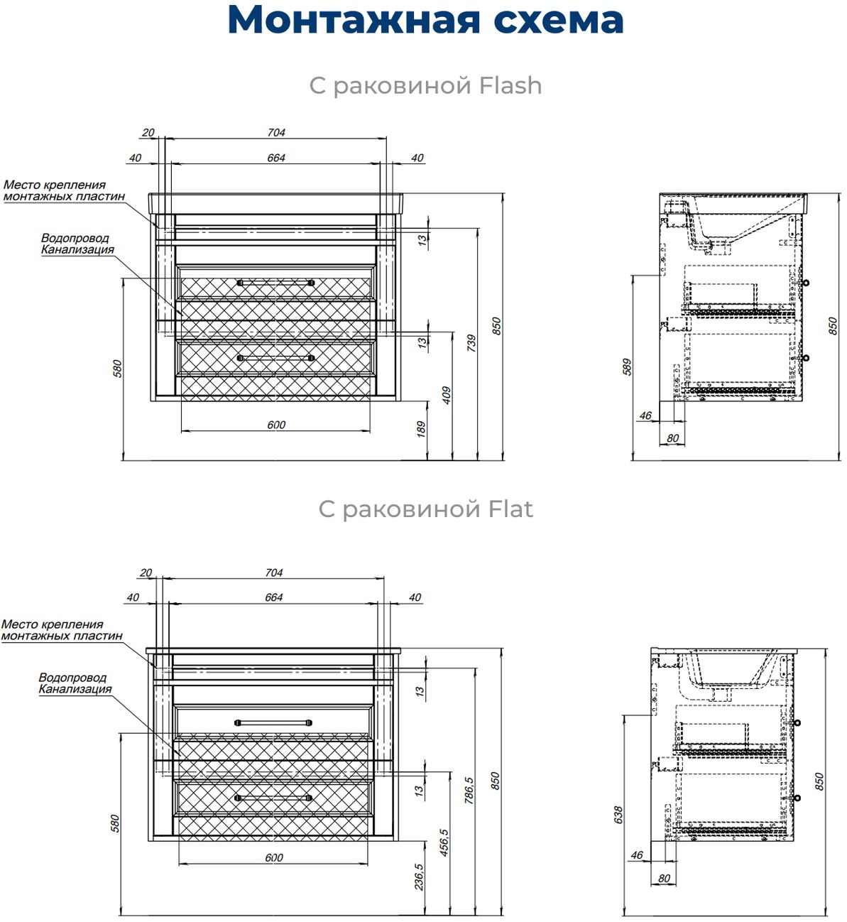 Тумба с раковиной Aquanet Бостон new 80 (Flat) цв.белый сатин