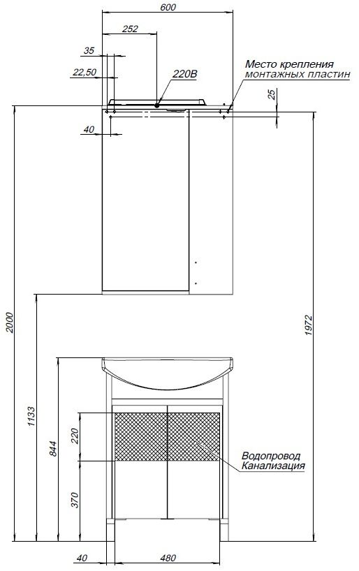 Тумба с раковиной Aquanet Донна 60 цв.белый глянец (Shenxin)