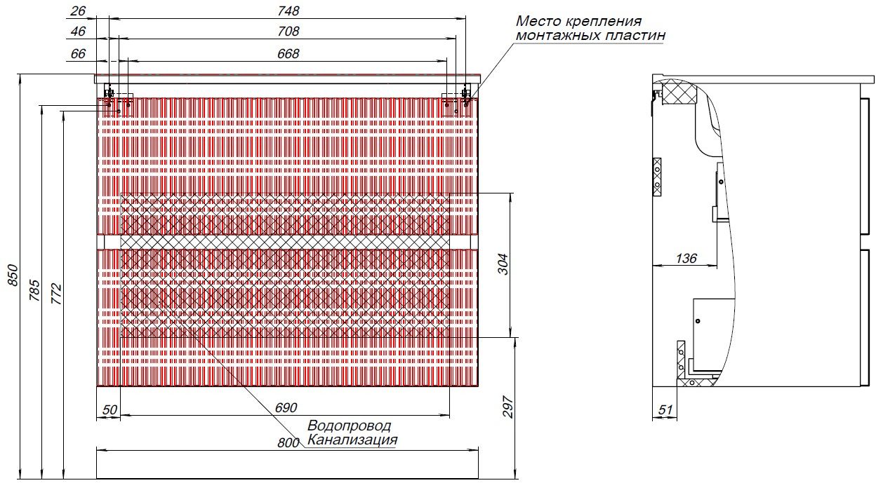 Тумба с раковиной Aquanet Джейн 80 цв.маренго (раковина Flat)