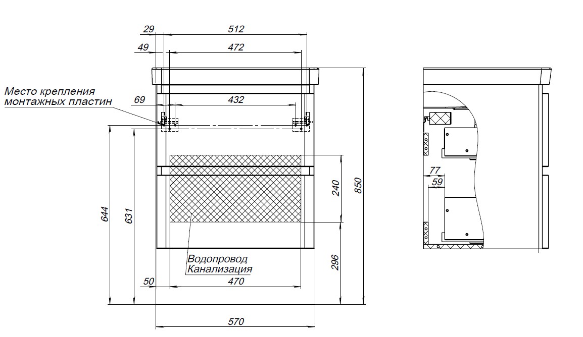 Тумба с раковиной Aquanet Эмбер 60 2 ящ. цв.черный матовый (раковина Luxury)