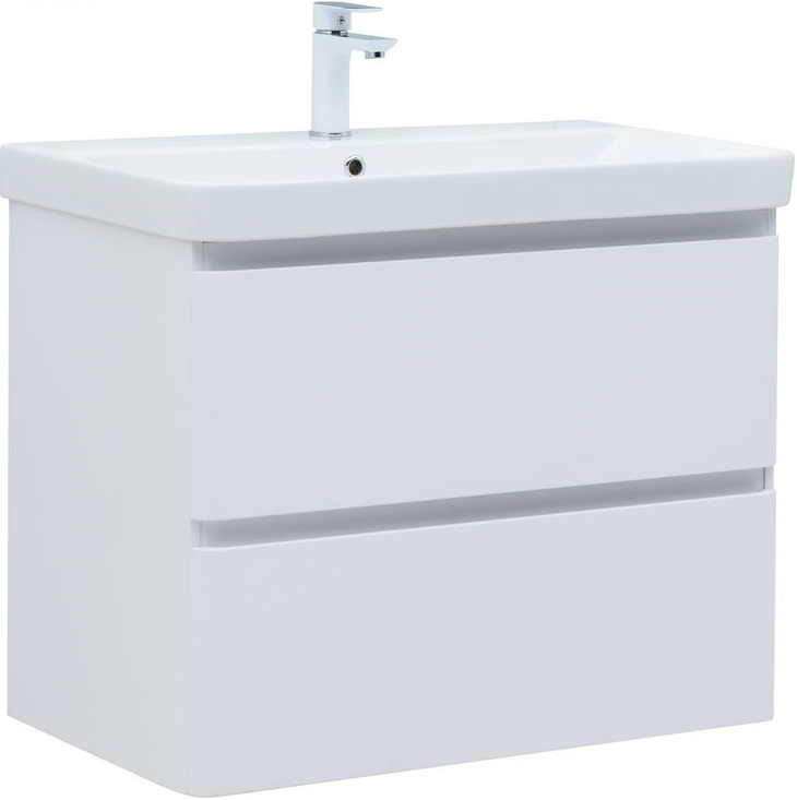 Тумба с раковиной Aquanet Эмбер 80 2 ящ. цв.белый матовый (раковина Luxury)