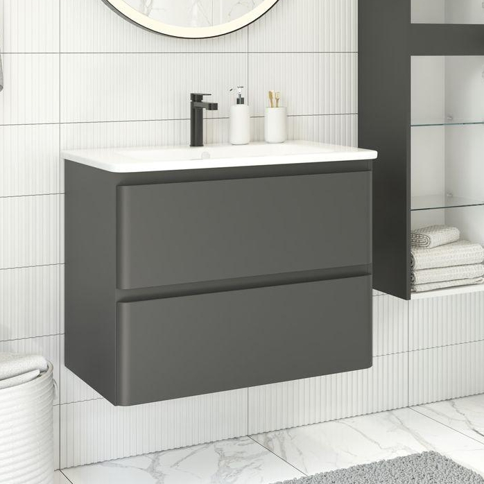 Тумба с раковиной Aquanet Эмбер 80 2 ящ. цв.черный матовый (раковина Luxury)