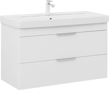 Тумба с раковиной Aquanet Ирис new 100 подвесная 2 ящ. цв. белый глянец