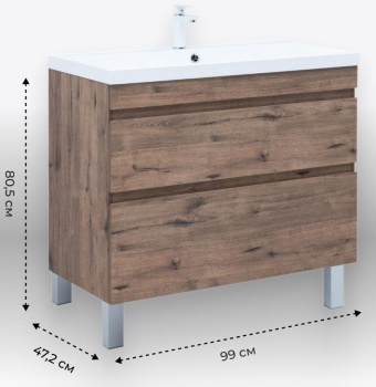 Тумба с раковиной Aquanet Нота New 100 напольная, дуб веллингтон табак
